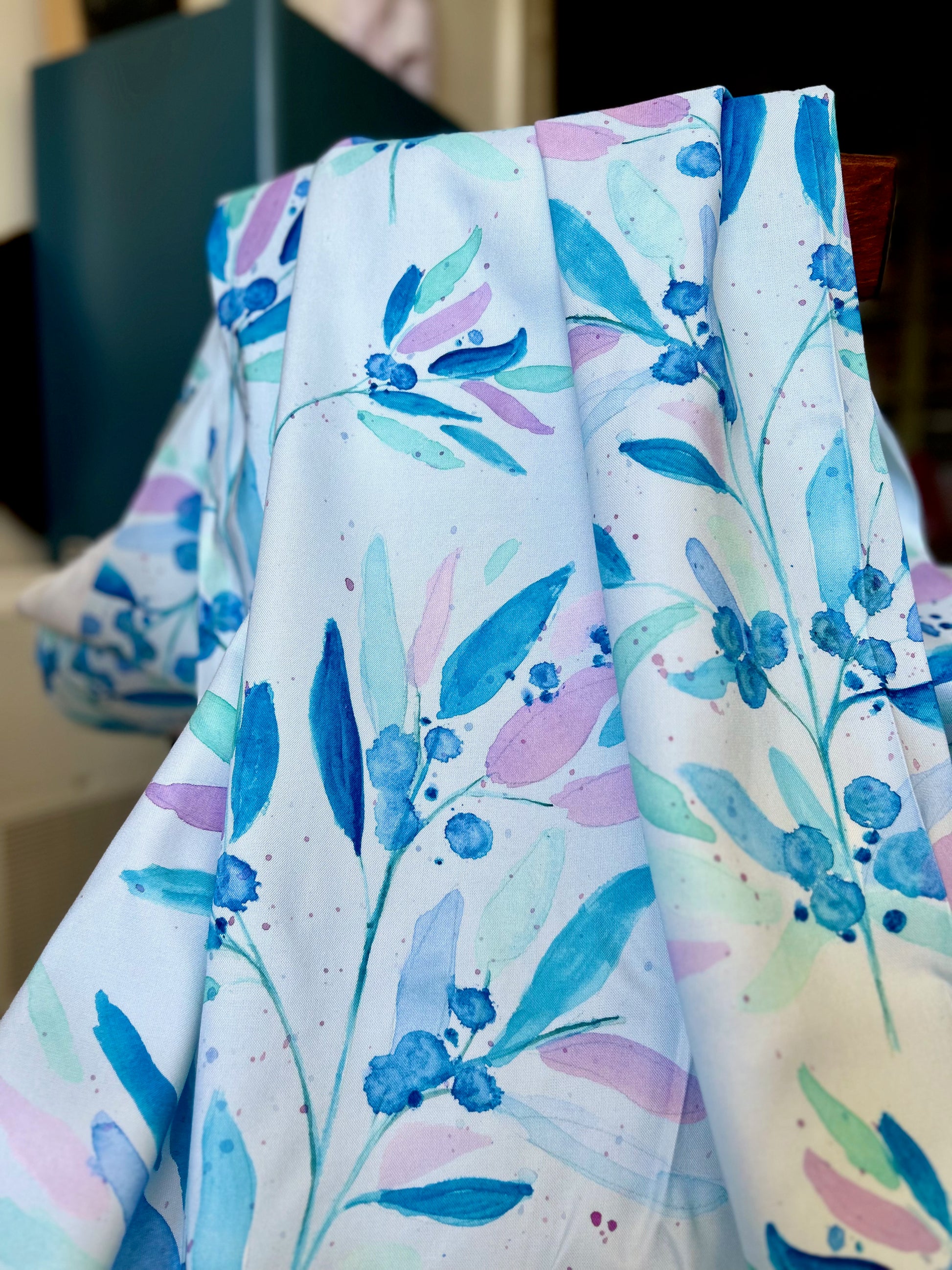 Huurremarjat (sininen), kudottu bambuviskoosi