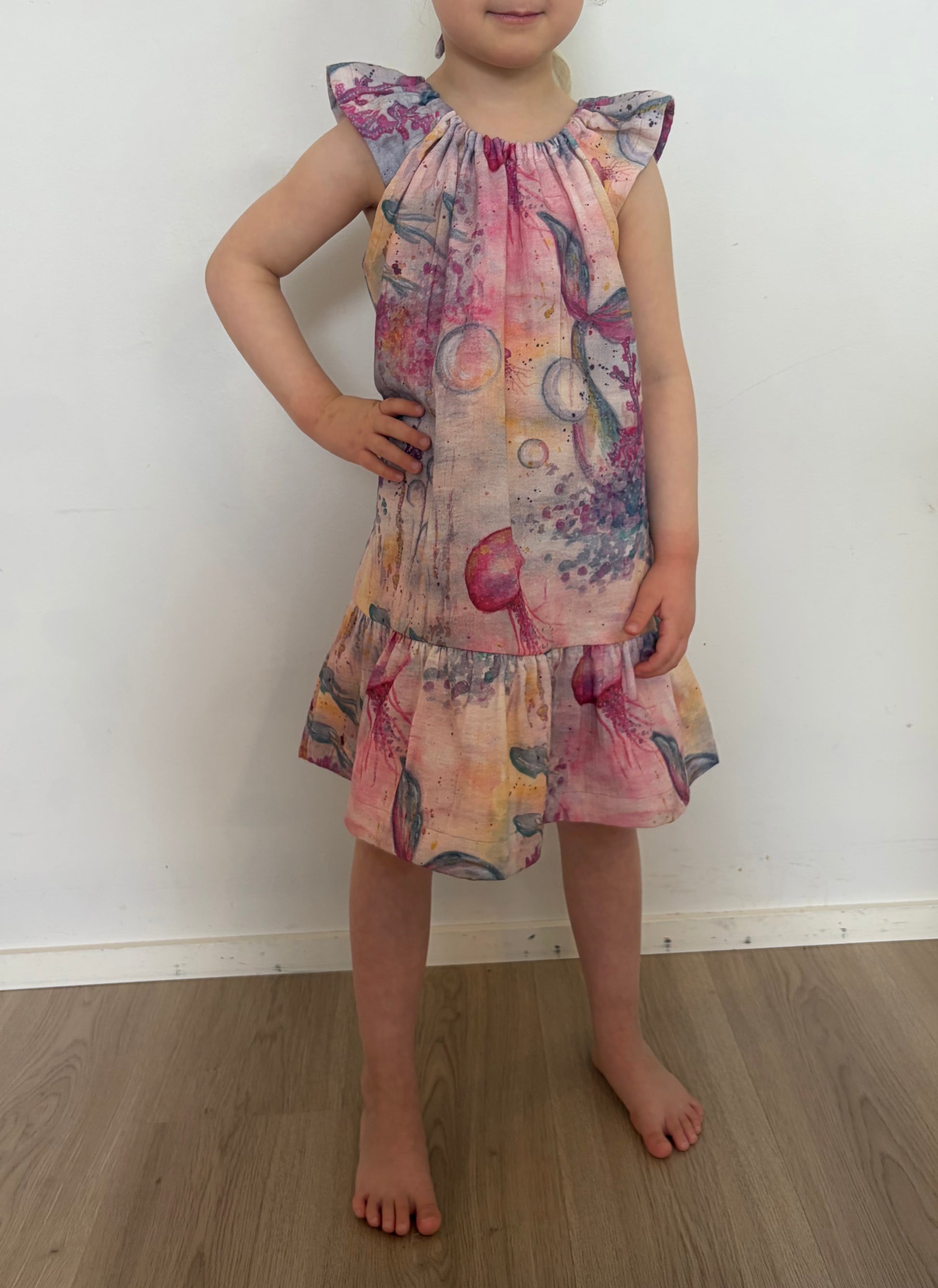 Ompele tästä esimerkiksi kevyet mekot, haalarit ja paidat. Muistathan esipestä kankaan kutistumisen takia. Raportin korkeus 32 cm, pyrstön korkeus noin 20 cm.